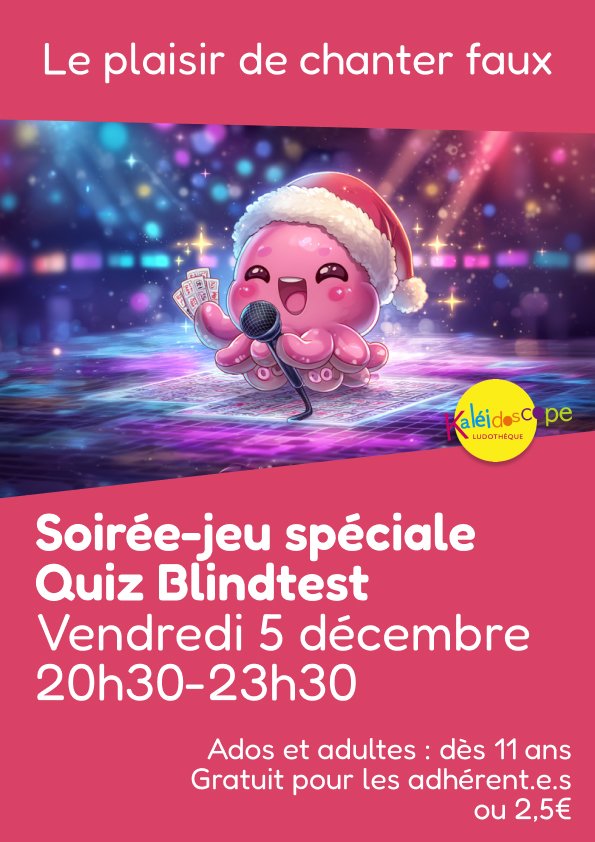 Ce mois-ci pour notre soirée-jeux mensuelle du vendredi 5 décembre, nous vous proposons un Quiz blind test !