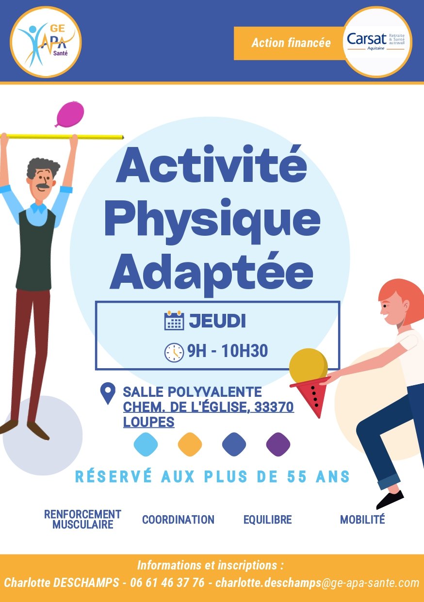 đ” De 09h00 Ă 10h30 ⥠atelier +55 ans : destinĂ© aux personnes qui ne pratiquent pas dâactivitĂ© physique encadrĂ©e.