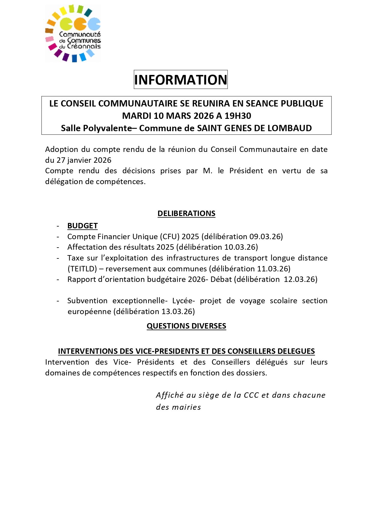 [CONSEIL COMMUNAUTAIRE] - MARDI 10 MARS 2026