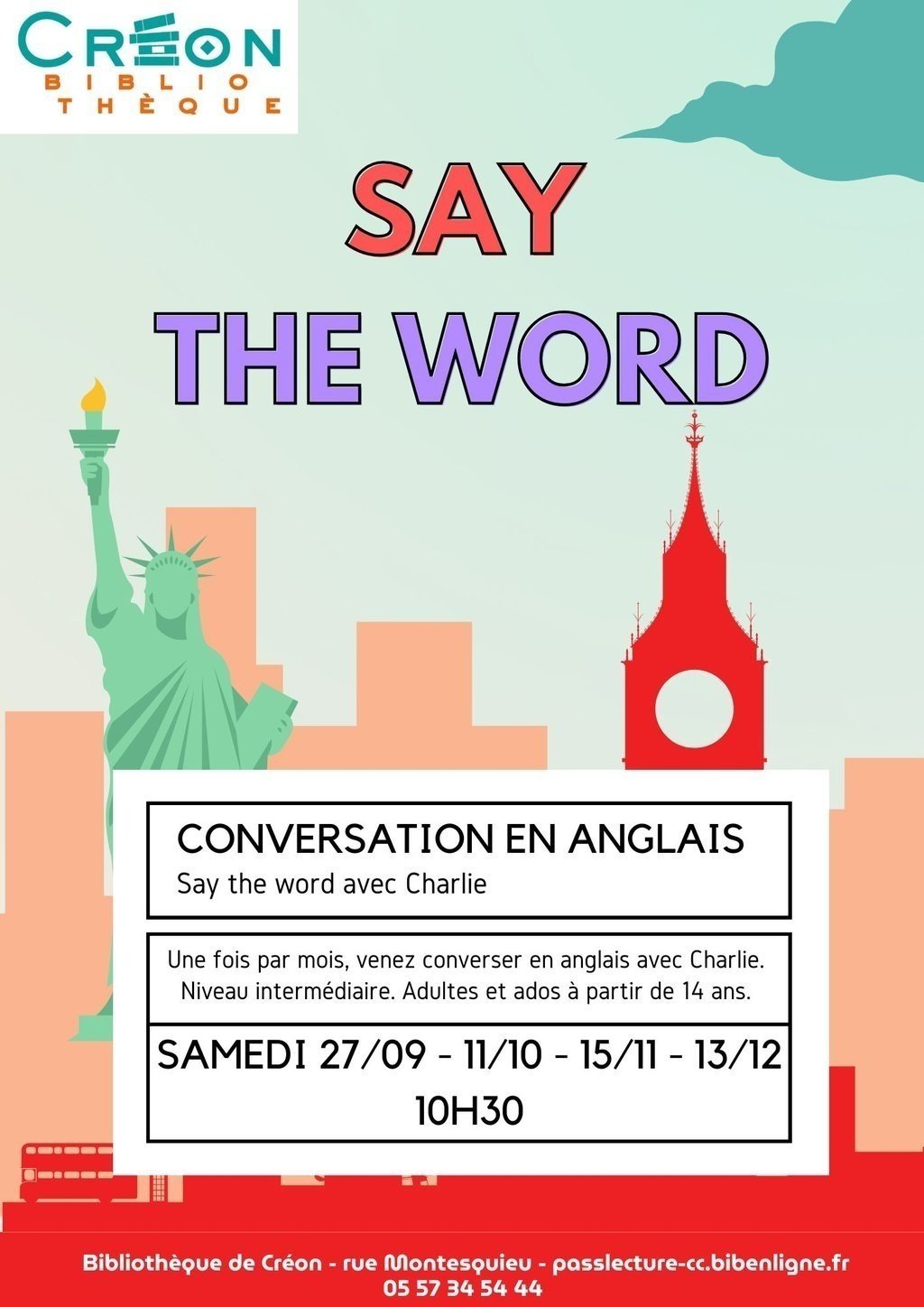 Pour s'inscrire : 05 57 34 54 44 / bibliotheque@mairie-creon.fr