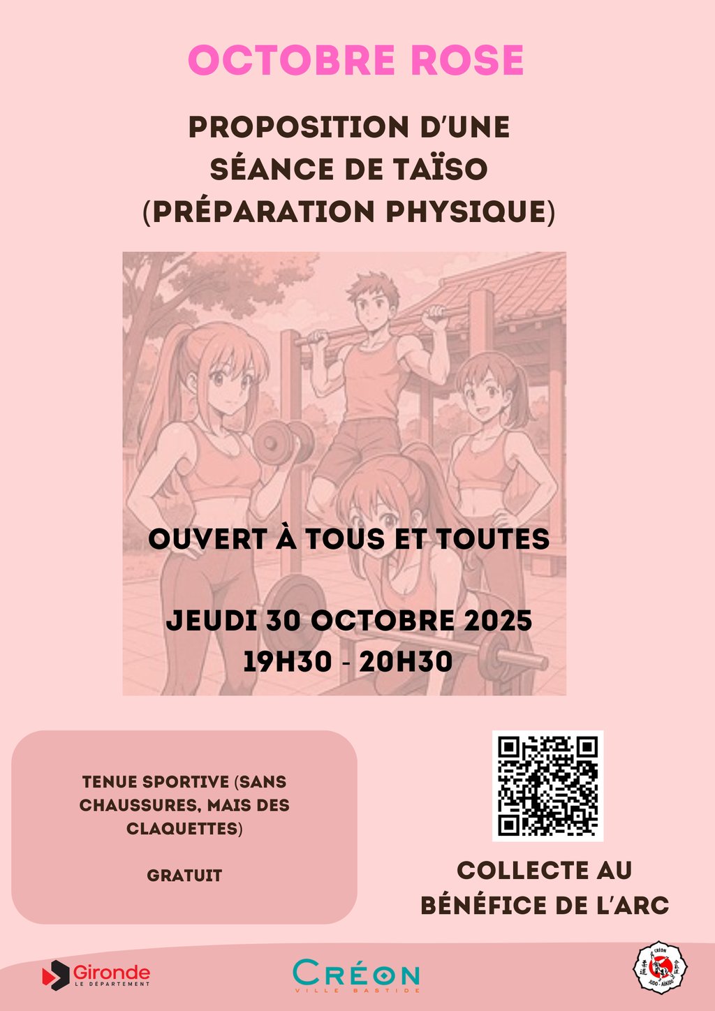 à l'occasion d'Octobre Rose, le club propose à toutes et tous (c'est-à-dire les non adhérents actuels) une séance découverte de l'activité.