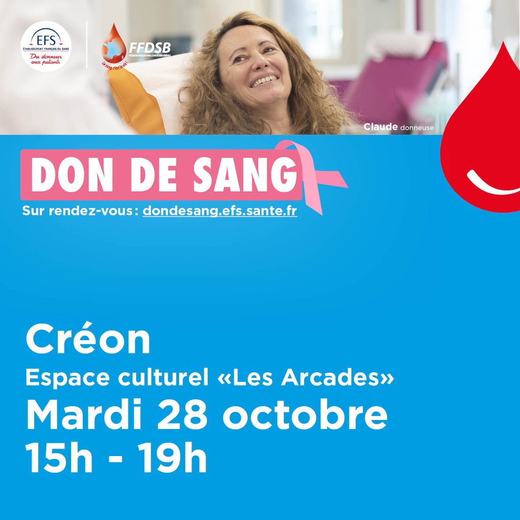 La prochaine collecte aura lieu le mardi 28 octobre 2025 de 15h à 19h à l'Espace culturel "Les Arcades".