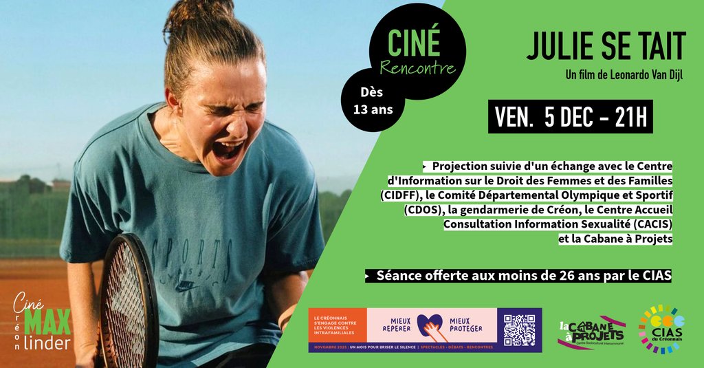 Projection suivie d'un échange avec le Centre d'Information sur le Droit des Femmes et des Familles, le Comité Département Olympique et Sportif, la gendarmerie de Créon, le Centre Accueil Cosultation Information Sexualité et la Cabane à Projets