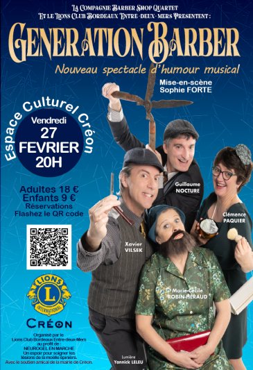 Le vendredi 28 fĂ©vrier Ă 20h, lâEspace Culturel de CrĂ©on vibrera au rythme de GĂ©nĂ©ration Barber : un spectacle musical et humoristique Ă ne pas manquer !