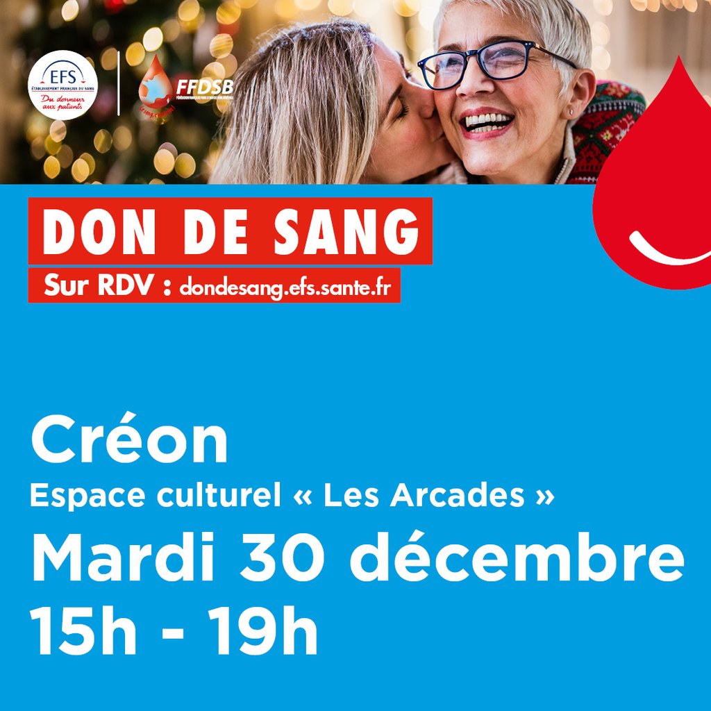 La prochaine collecte aura lieu le mardi 30 décembre 2025 de 15h à 19h à l'Espace culturel "Les Arcades".