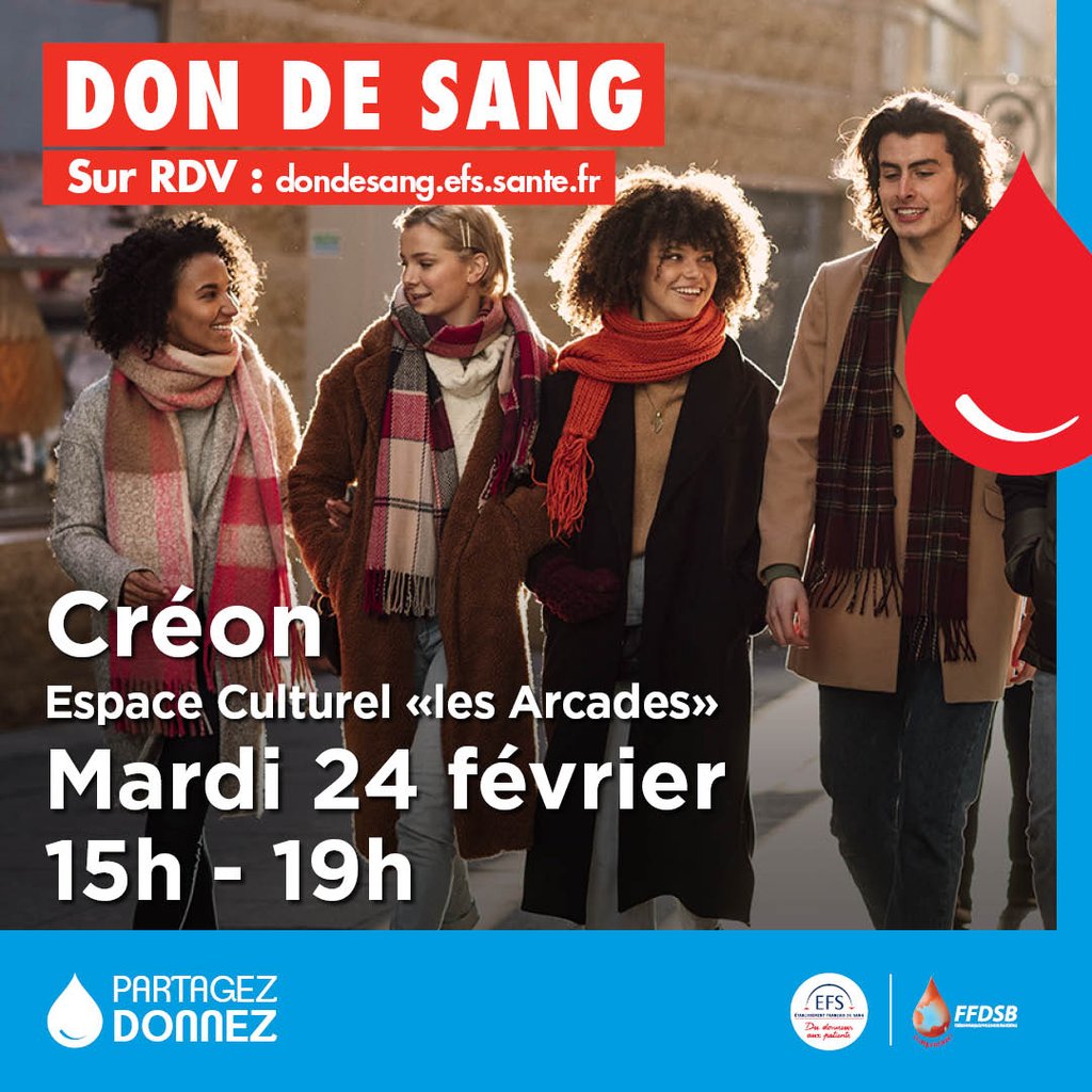 La prochaine collecte aura lieu le mardi 24 février 2026 de 15h à 19h à l'Espace culturel "Les Arcades".