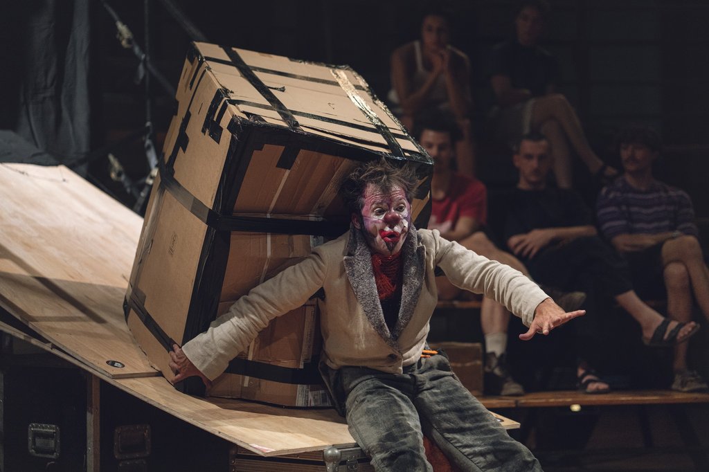 La nouvelle création de Galapiat Cirque invite à suivre l’épopée d’un Idiot, et à travers lui, celle des écartés, que l’Histoire ne retient jamais. Ultime voyage du clown de Moïse Bernier, nous suivrons sa chute au cœur d’une scénographie qui va osciller entre organique et mécanique.