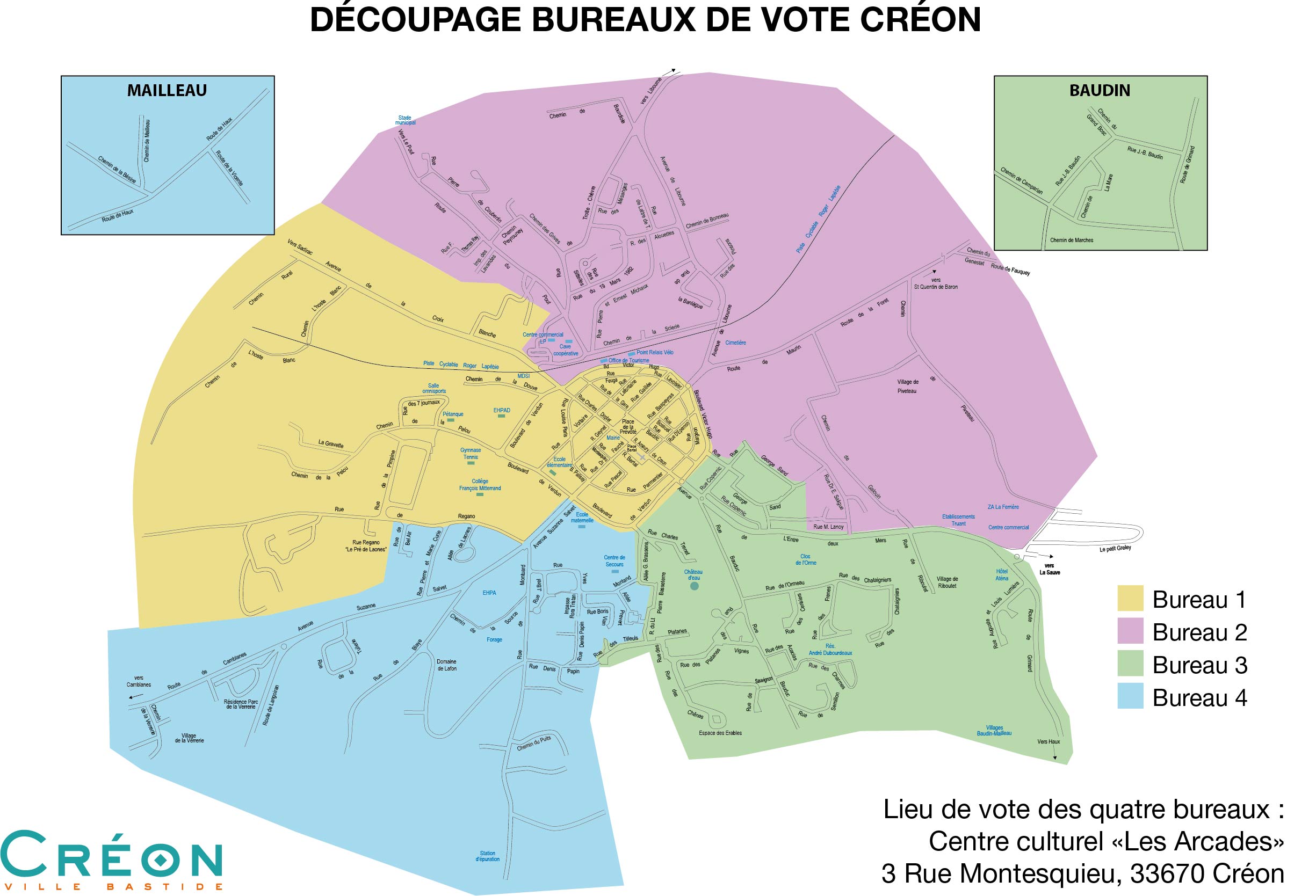 Les 4 bureaux de votes sont ouverts de 8h à 18h et sont situés au centre Culturel "Les Arcades" 3 rue Montesquieu 33670 Créon.